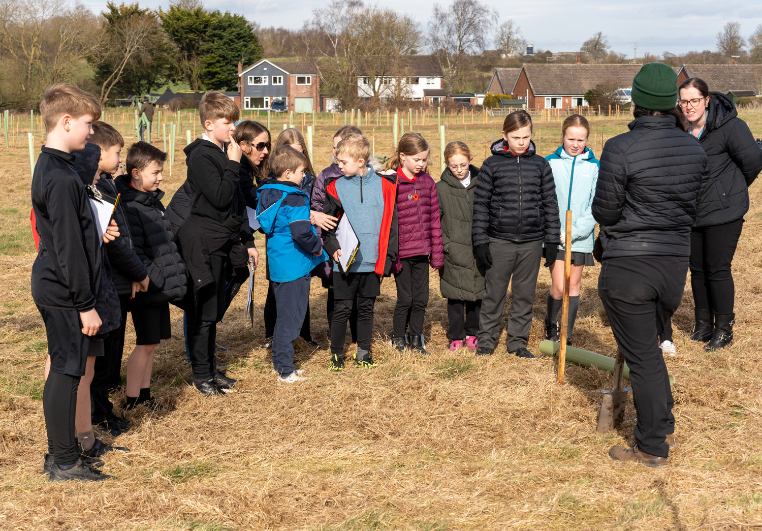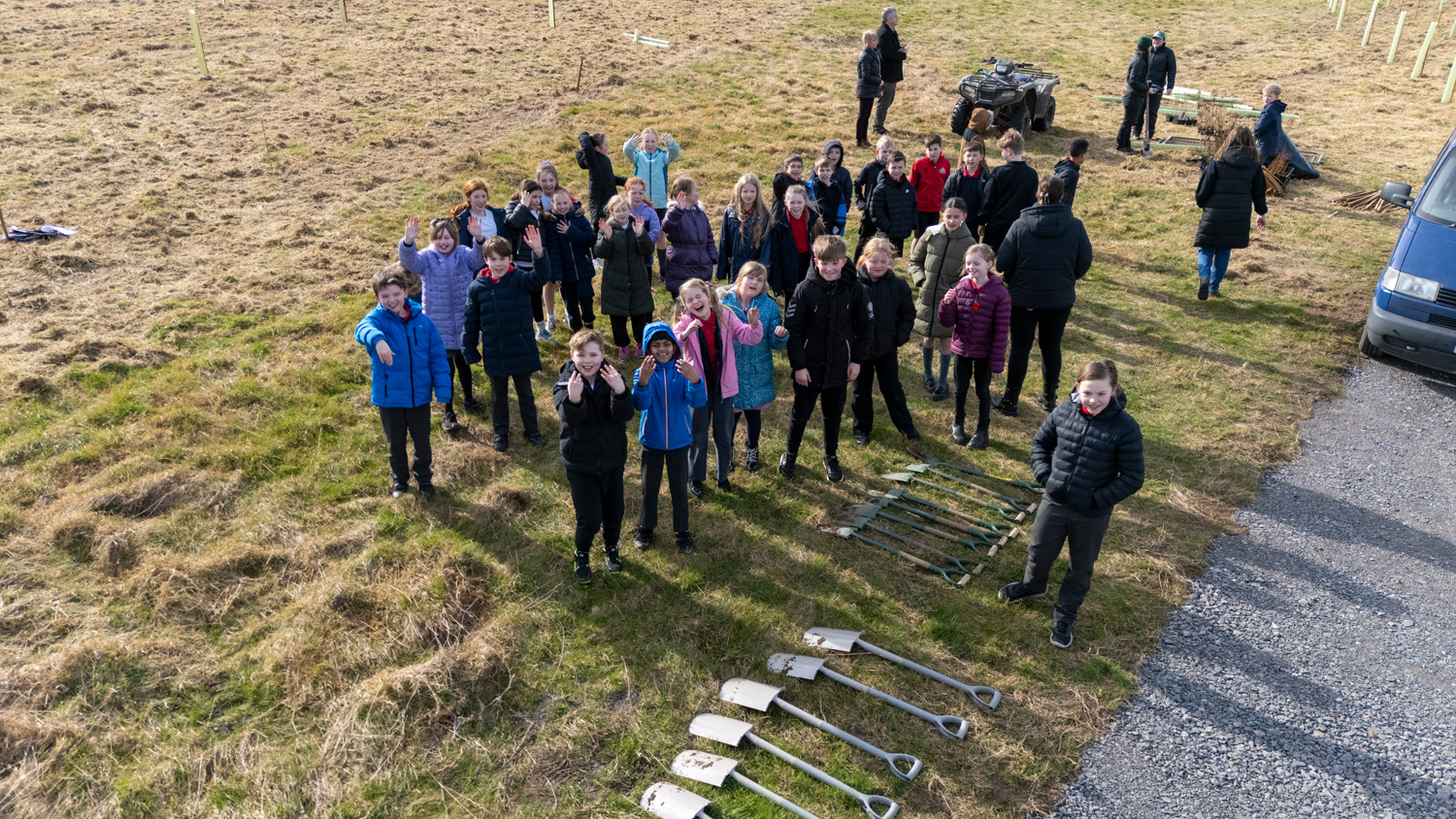 The planting day on 5th March 2025 brought together an extraordinary mix of people: 78 children from Romanby Primary School, local residents, members of Romanby Parish Council, Northallerton BID, the WI, and employees from across the FT Group. Many used the What3words app to record the exact location of their personally planted tree, so they can find it again, watch it grow, and one day bring their own families back to see it.